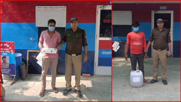 कच्ची शराब के साथ तस्कर गिरफ्तार। इसके अलावा पुलिस ने अवैध शराब के खिलाफ अभियान चलाकर चेकिंग के दौरान एक व्यक्ति को कच्ची देसी 20 लीटर शराब के साथ गिरफ्तार किया है। पूछताछ में आरोपी ने अपना नाम सुखपाल पुत्र सीताराम कोतवाली क्षेत्र के गांव गंगदासपुर बताया। इस तस्कर के खिलाफ खिलाफ संबंधित धारा में मुकदमा पंजीकृत किया गया है।