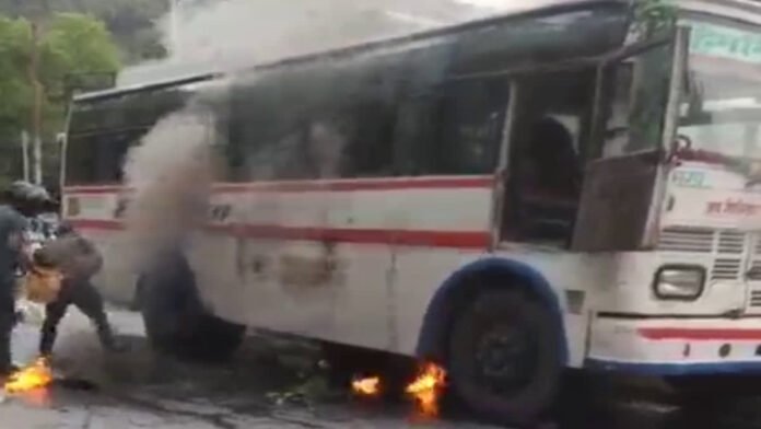 रुद्रप्रयाग में बारातियों से भरी बस में लगी आग: श्रीनगर से बारातियों को लेकर रुद्रप्रयाग की ओर आ रही हिमगिरी एक्सप्रेस बस में बदरीनाथ हाईवे पर खांखरा के पास अचानक से आग लग गई. आग की लपटें इतनी तेजी के साथ उठी कि सवारियों में अफरा-तफरी मच गई. इसके बाद चालक ने किसी तरह वाहन को रोका, फिर सवारियों को नीचे उतारा और स्थानीय ग्रामीणों की मदद से आग पर काबू पाया.