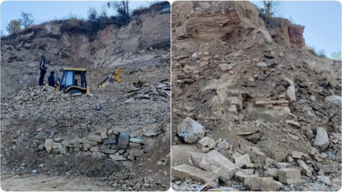 क्षेत्र में पूर्व में प्रतिबंधित दो खानों में अवैध रूप से खनन कर पत्थर निकाले जा रहे थे। क्षेत्र में दो खानों में जेसीबी मशीन से कार्य कर रही थी। प्रशासन की ओर से निकले गए पत्थरों को कब्जे में लेकर जब्त किया गया। वहीं दो लोगों के खिलाफ चालानी कार्रवाई की गई। मौके पर कई ट्रक भी खडे़ थे। कहा जा रहा है कि ट्रक पत्थरों के ढुलान के लिए लाए थे, लेकिन प्रशासन की टीम को ट्रक खाली मिले। उपजिलाधिकारी सदर जय वर्धन शर्मा ने बताया कि ग्रामीणों की ओर से अवैध खनन किए जाने की शिकायत मिलने पर छापेमारी की गई. इस दौरान प्रतिबंधित दो खानों में अवैध रूप से खनन करते हुए दो जेसीबी मशीनें पाई गई। जिसके बाद मशीन को सीज कर खनन अधिकारी को चालानी कार्रवाई समेत अन्य कार्रवाई करने के निर्देश दिए गए. उन्होंने कहा कि पूर्व में साढ़े तीन माह पूर्व भी इसी क्षेत्र में अवैध खनन पर कार्रवाई की गई थी।