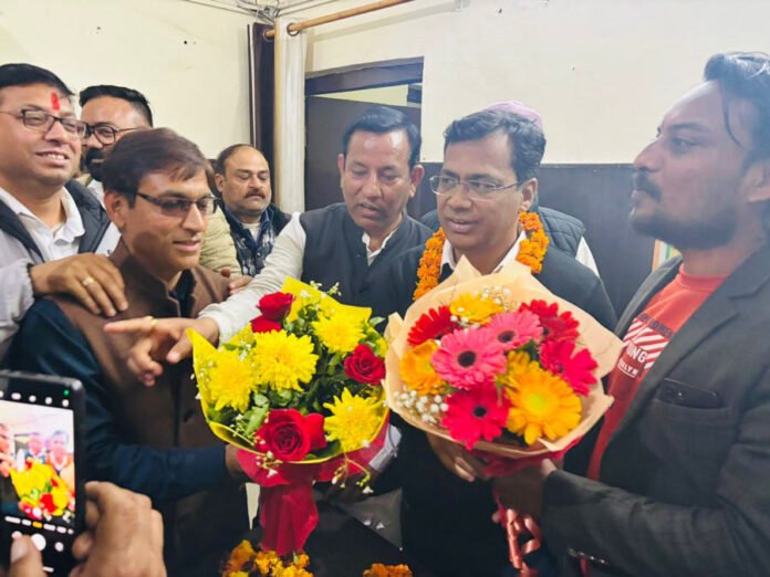देहरादून। आगामी नगर निकाय चुनावों को लेकर कांग्रेस ने अपनी रणनीति को तेज़ी से अमल में लाना शुरू कर दिया है। इसी कड़ी में कांग्रेस के ज़िला प्रभारी प्रकाश जोशी के देहरादून आगमन पर उनका भव्य स्वागत किया गया। प्रदेश महामंत्री और मेयर पद के प्रमुख दावेदार नवीन जोशी ने अपने समर्थकों के साथ जोरदार उत्साह दिखाते हुए जोशी का अभिनंदन किया।