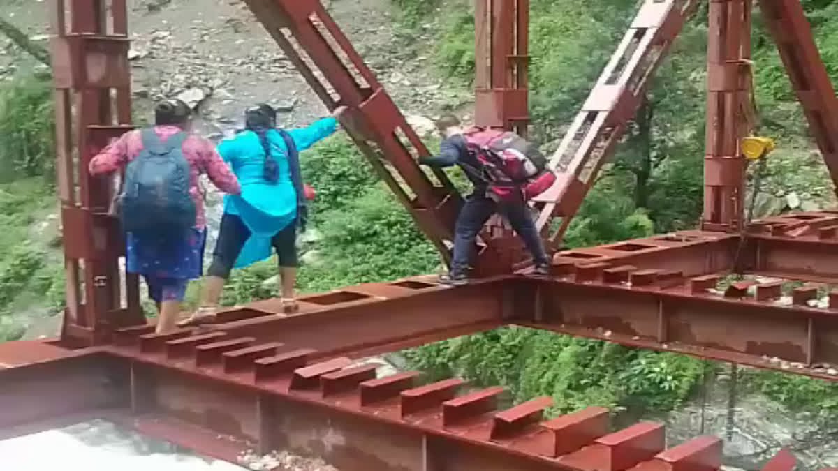बागेश्वर। कपकोट तहसील के दूरस्थ क्षेत्र विपुल से ऐसी तस्वीरें सामने आई है। जिससे शासन प्रशासन में हड़कंप मचा हुआ है। यहां ग्रामीण शंभू नदी के ऊपर किलपारा और कुंवारी को जोड़ने वाले निर्माणाधीन पुल को पार करते दिख रहे हैं। लोग अपनी जान को जोखिम में डालकर पुल से गुजर रहे हैं। वीडियो का जिलाधिकारी अनुराधा पाल ने संज्ञान ले लिया है। साथ ही उप जिलाधिकारी अनुराग आर्य को जांच के निर्देश दे दिए हैं। जान जोखिम में डालकर आवाजाही कर रहे लोग: जानकारी के मुताबिक, बागेश्वर जिले के कपकोट तहसील के विपुल क्षेत्र में शंभू नदी बहती है। जिसके ऊपर लोहे का मोटर पुल बनाया जा रहा है। यह पुल किलपारा और कुंवारी को जोड़ेगा। इन दिनों शंभू नदी उफान पर बह रही है। लेकिन ऊपर निर्माणाधीन पुल से ग्रामीण महिलाएं और पुरुष जान जोखिम में डालकर आवाजाही करते नजर आ रहे हैं। इस कारण निर्माणाधीन पुल पर किसी बड़े हादसे से इनकार नहीं किया जा सकता है। महिलाओं के निर्माणाधीन पुल को पार करने का वीडियो भी सामने आया है।