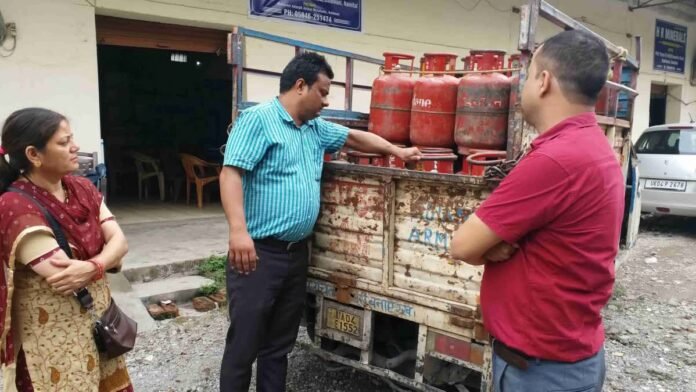 हल्द्वानी। घरेलू गैस के सिलेंडर में घटतौली का मामला सामने आया है, जहां खाद्य पूर्ति विभाग के छापेमारी कर 34 सिलेंडर चेक किए जाने पर 28 सिलेंडर में 1 किलो से लेकर 4 किलो तक गैस कम पाई गई है। पूरे मामले में खाद्य पूर्ति विभाग द्वारा गैस वाहन चालक के खिलाफ पुलिस में मुकदमा दर्ज करने की कार्रवाई कर रहा है। वहीं लोगों ने घटतौली की शिकायत कुमाऊं कमिश्नर दीपक रावत से की थी, जिसके बाद छापेमारी की कार्रवाई की गई है।