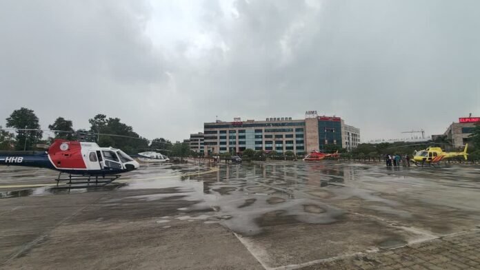 एम्स में चार हेलीकॉप्टरों की इमरजेंसी लैंडिंग एक में यूपी के मंत्री थे सवार मौसम हुआ खराब