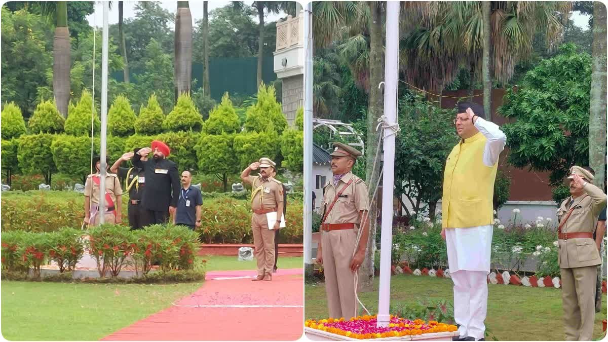 देहरादून। देश के 78वें स्वतंत्रता दिवस के अवसर पर देशभर में ध्वजारोहण किया जा रहा है. इसी क्रम में राज्यपाल ले। ज. गुरमीत सिंह (सेनि.) ने राजभवन में और सीएम पुष्कर सिंह धामी ने मुख्यमंत्री आवास में ध्वजारोहण किया। साथ ही देश के लिए सर्वोच्च बलिदान देने वाले सैनिकों को भी श्रद्धांजलि अर्पित की। इस मौके पर दोनों ने प्रदेश और देशवासियों को स्वतंत्रता दिवस की शुभकामनाएं दी। साथ ही कर्मचारियों को अपने कर्तव्यों का पूरी निष्ठा के साथ पालन करने को लेकर शपथ भी दिलाई। राज्यपाल ले. ज. गुरमीत सिंह (सेनि.) ने स्वतंत्रता दिवस के अवसर राजभवन में ध्वजारोहण किया। ध्वजारोहण कर राजपाल गुरमीत सिंह ने 78वें स्वतंत्रता दिवस प्रदेशवासियों को शुभकामनाएं दी। साथ ही कहा कि आज का दिन हमारे लिए बहुत महत्वपूर्ण है, क्योंकि जिन लोगों ने हमें आजादी दिलाई उनके सर्वोच्च बलिदान और उनकी निष्ठा को हम नमन करें। 21वीं शताब्दी में जो हमारे लक्ष्य है उन लक्ष्यों को कैसे पूरा किया जाए. सतत विकास के साथ राष्ट्र को शक्ति और समृद्धि की दिशा में किस तरह से आगे ले जाना है, इस ओर संकल्प लेने की जरूरत है। वर्तमान समय में टेक्नोलॉजी एक बेहतर विकल्प है। इसमें अत्यधिक संभावनाएं हैं, जिसका सही ढंग से इस्तेमाल कर विकसित देश की दिशा में आगे बढ़ सकते हैं।
