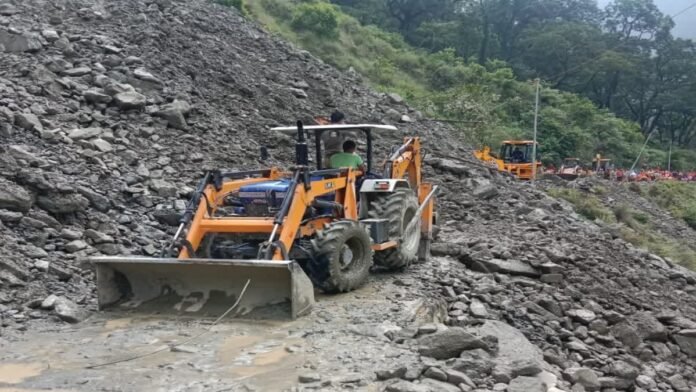 उत्तरकाशी। गंगोत्री हाईवे पर विशनपुर के पास मलबा और बोल्डर आने के कारण बंद हो गया। बीआरओ यातायात खोलने में जुटा हुआ है. हाईवे की स्थिति को देखते हुए पुलिस ने यातायात भटवाड़ी और जिला मुख्यालय में रोक दिया है. वहीं, जिला मुख्यालय में भी कांवड़ियों को रोका जा रहा है। बीआरओ के अधिकारियों का कहना है कि मलबा ज्यादा आने के कारण हाईवे खोलने में परेशानी हो रही है। रविवार सुबह विशनपुर के पास अचानक पहाड़ी से बड़े-बड़े बोल्डर गिरने से गंगोत्री हाईवे बंद हो गया। जहां हाईवे के दोनों ओर तीर्थयात्रियों और कांवड़ियों के वाहन की कतारें लग गई. वहीं, पुलिस ने तीर्थयात्रियों के वाहनों को सुरक्षित स्थानों पर रोक दिया है। इस बीच भी कई कांवड़ियों ने मलबे के ऊपर से जबरन आवाजाही करते नजर आए। उसके बाद पुलिस ने सभी कांवड़ियों को दोनों ओर रोक दिया।
