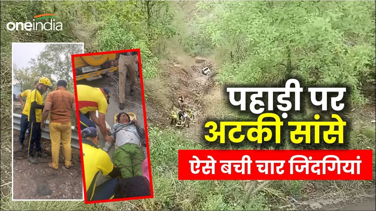 बाल-बाल बची जिंदगियां पहाड़ी पर अटकी कार खाई में गिरी क्रेन घायलों को बचाने उतरी SDRF