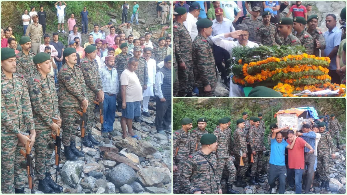 रुद्रप्रयाग: अफ्रीका महाद्वीप के युगांडा देश में शहीद हुए 39 साल के संजय सिंह पुष्वाण का आज 16 जुलाई मंगवलार को रुद्रप्रयाग में अंतिम संस्कार किया गया. संजय सिंह पुष्वाण 11 गढ़वाल राफल्स के जवान थे, और भारतीय सेना की तरफ से अंतरराष्ट्रीय शान्ति सेना में शामिल होकर युगांडा गए थे. वहीं पर 10 जुलाई को उनका निधन हो गया था, जिनका पार्थिक शरीर कल ही उनके पैतृक गांव रुद्रप्रयाग जिले के किमाणा गांव में पहुंचा था, जहां आज संजय सिंह पुष्वाण का सैन्य सम्मान के साथ अंतिम संस्कार किया गया. तहसील मुख्यालय के निकटवर्ती गांव किमाणा निवासी 39 साल के संजय सिंह पुष्वाण पुत्र दौलत सिंह पुष्वाण 11 गढ़वाल राफल्स में हवलदार के पद पर थे. इस दिनों उनकी ड्यूटी युगांडा में थी, वो अंतरराष्ट्रीय शान्ति सेना में शामिल होकर युगांडा गए थे.