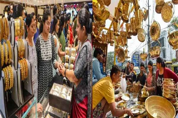 बाहर तक लगी दुकाने, खूब खरीदे गए स्टील के बर्तन