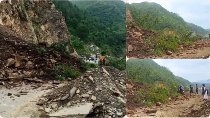 लोगों की बढ़ी परेशानियां घाट-लोहाघाट हाईवे पहाड़ी से मलबा गिरने से बाधित