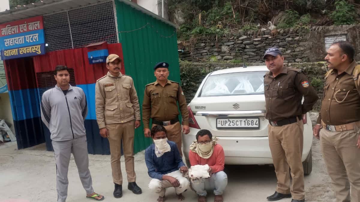 हल्द्वानी। नैनीताल पुलिस द्वारा नशे के खिलाफ चलाए जा रहे अभियान के तहत खन्स्यू थाना पुलिस ने बड़ी कामयाबी हासिल की है। जहां लग्जरी कार से चरस की तस्करी करते हुए दो आरोपियों को गिरफ्तार किया गया है। पकड़े गए दोनों आरोपी उत्तर प्रदेश बरेली के रहने वाले हैं। फिलहाल पुलिस मामले की जांच कर रही है। थाना प्रभारी खन्स्यू रोहिताश सागर ने बताया कि मिशन ड्रग्स फ्री देवभूमि के तहत चलाए जा रहे हैं अभियान के तहत पुलिस ने थाना क्षेत्र में चेकिंग के दौरान पतलोट के पास एक कार को रोक कर जब उसकी तलाशी ली गई तो कार के अंदर सवार लोग घबराकर भागने लगे। जिसके बाद पुलिस ने उनको पकड़ कर पूछताछ की तो आरोपियों के कार से 1 किलो चरस बरामद की गई।