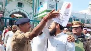 महानगर में जुमे की नमाज के दौरान एक युवक ने ‘आई लव मोहम्मद’ के नाम का पोस्टर लहराया। इसके बाद पुलिस ने तुरंत उसे पकड़ लिया। काफी जद्दोजहद के बाद उससे पोस्टर छीन लिया और अपने साथ ले गई। महानगर की जामा मस्जिद में शुक्रवार दोपहर एक बजे नमाज शुरू हुई। नमाज अदा होने के बाद नमाजी अपने-अपने घर की ओर जाने लगे, तभी उनमें से एक व्यक्ति ने अपनी जेब में से ‘आई लव मोहम्मद’ लिखा पोस्टर निकालकर लहराना शुरू कर दिया। वहां मौजूद पुलिसकर्मियों ने तत्काल उस व्यक्ति को पकड़ लिया और उसे वहां से ले गए। इस दौरान कुछ देर के लिए अफरातफरी का माहौल हो गया। पुलिस प्रशासन ने सुरक्षा व्यवस्था के लिए कड़े बंदोबस्त किए थे। मौके पर पर्याप्त मात्रा में पुलिस बल एवं अधिकारी मौजूद रहे। बताया गया कि पुलिस उक्त व्यक्ति से पूछताछ कर रही है।