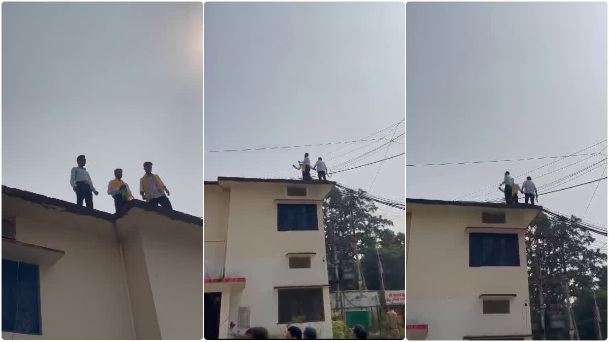 हल्द्वानी। छात्रसंघ चुनाव की तिथि घोषित नहीं किये जाने से शुक्रवार को एमबीपीजी कॉलेज में छात्रों ने हंगामा किया। नाराज तीन छात्र नेता प्राचार्य कक्ष के छत पर हाथ में पेट्रोल की बोतल लेकर चढ़ गए। इस दौरान छात्रों ने प्राचार्य कक्ष में हंगामा कर दिया। छात्रों द्वारा पेट्रोल की बोतल लेकर कॉलेज के छत पर चढ़ जाने की सूचना के बाद पुलिस प्रशासन और कॉलेज प्रशासन में हड़कंप मच गया। मौके पर पहुंची पुलिस और प्रशासन की टीम में पुलिस ने इसी तरह से छात्रों को समझाया बूझकर मुश्किल से उतारा ।छात्रों का आरोप है कि कुमाऊं विश्वविद्यालय प्रशासन में पिछले दिनों हुए आंदोलन में वादा किया था कि 25 अक्टूबर तक छात्र संघ चुनाव हो जाएंगे, लेकिन अभी तक किसी तरह से चुनाव अधिसूचना जारी नहीं हुई है।