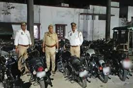 दस मोटरसाइकिलों को पुलिस ने सीज किया