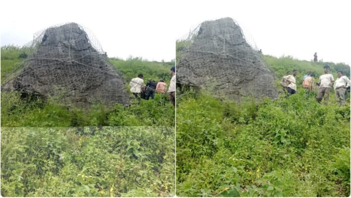 PWD ने संभाला मोर्चा जजरेड़ पहाड़ी पर लटके विशालकाय पत्थर का ट्रीटमेंट शुरू