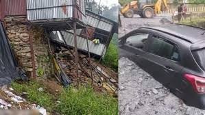 कर्णप्रयाग में बारिश से आफत मलबे में फंसी कार नैनीताल हाईवे बंद बाजार में भूधंसाव से दुकानें क्षतिग्रस्त