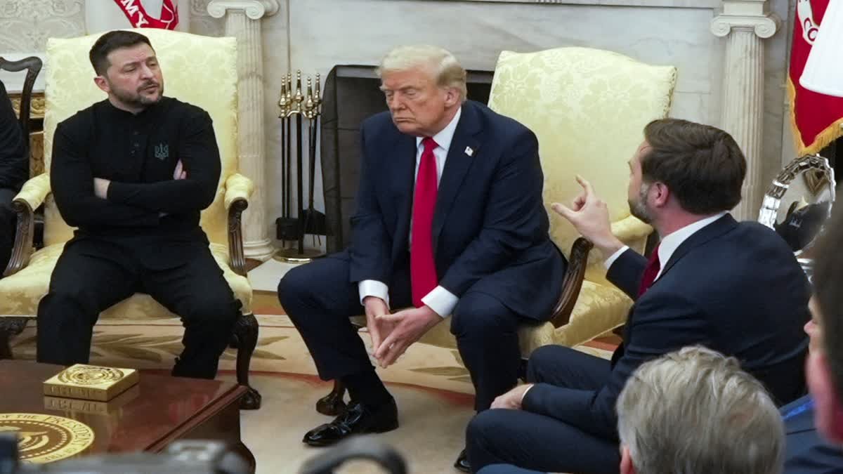 ट्रंप ने जेलेंस्की से कहा कि वह शांति बनाना चाहते हैं। वह यूक्रेन में रक्तपात रोकना चाहते हैं। यूक्रेनी लोग मर रहे हैं। वहां सैकड़ों हजारों सैनिकों की मौत हो रही है। अब मौतों को रोकने का समय आ गया है। ट्रंप ने इस बात पर जोर दिया कि वह चाहते हैं कि युद्ध तुरंत समाप्त हो.इसके साथ ही उन्होंने खनिज सौदे का भी मुद्दा उठाया। उन्होंने कहा कि वह इसके लिए वह बस एक सौदा करना चाहते हैं। अगर सौदा हो जाता है, तो अच्छा है। वैसे भी यूक्रेन को लड़ाई रोकनी होगी, मौत को रोकना होगा। ट्रंप ने कहा कि जेलेस्की को तत्काल युद्ध विराम करना चाहिए। युद्ध विराम तुरंत हो सकता है. उन्होंने साफ किया कि युद्ध समाप्त करने के लिए जेलेस्की को एक समझौते पर हस्ताक्षर करना होगा.इस पर जेलेंस्की ने कहा कि आप पुतिन की भाषा बोल रहे हैं और रूस का साथ दे रहे हैं. इस बात पर ट्रंप भड़क गए. उन्होंने कहा कि जेलेंस्की को पुतिन के बारे में नाकारात्मक बोलने के जरूत नहीं है। वह किसी देश का साथ नहीं दे रहे हैं। ट्रंप ने कहा कि यूक्रेन अमेरिकी हथियारों के बल पर युद्ध में टिका है। जेलेंस्की के बारे में कहा कि वह शांति नहीं चाहते. ट्रंप ने जेलेस्की पर अमेरिका का अपमान करने का आरोप लगाया। साथ ही साफ साफ कहा कि आप तीसरे विश्व युद्ध का जुआ मत खेलिए।