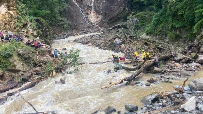 टिहरी। उत्तराखंड में भारी बारिश से नदी-नाले उफान पर हैं. वहीं लोग जान जोखिम में डालकर नदी नाले पार करते दिखाई दे रहे हैं। वहीं टिहरी में स्वास्थ्य विभाग का एक कर्मचारी गदेरे में बह गया। कर्मचारी घनसाली विधानसभा के गेंवाली बूढ़ाकेदार क्षेत्र में आई आपदा के बाद दवाइयां बांटकर वापस लौट रहा था और उफनते नाले को पार करते समय बह गया। गौर हो कि बीते दिन भारी बारिश से घनसाली विधानसभा के तहसील बालगंगा के अंतर्गत आने वाले ग्राम गेंवाली बूढ़ाकेदार में बादल फटने की घटना घटित हुई। आपदा की जानकारी मिलते ही थाना घनसाली पुलिस, एसडीआरएफ, प्रशासन, स्वास्थ्य विभाग और आपदा प्रबंधन की टीमें मौके पर पहुंची और राहत-बचाव कार्यों में जुट गईं।