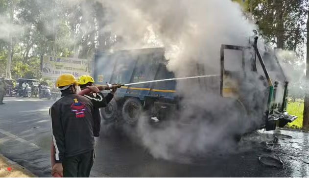 आग भड़कता देख चालक ने डंपर को हाईवे किनारे रोका और कूदकर अपनी जान बचाई। इस बीच डंपर का केबिन आग का गोल बन गया। राहगीरों ने आग की सूचना दमकल विभाग रुड़की को दी।सूचना मिलते ही प्रभारी अग्निशमन सुंदर पाल, लीडिंग फायरमैन अतर सिंह राणा, विपिन सिंह तोमर, फायरमैन हरीश राणा, विपिन सैनी, देवेंद्र सिंह भंडारी, सुरेश कुमार दमकल की दो गाड़ी लेकर मौके पर पहुंचे और करीब एक घंटे की मशक्कत के बाद आग पर काबू पाया। लेकिन तब तक आग से ट्रक का केबिन, अगले और पीछे टायर जलकर राख हो गए।डंपर में आग लगने से हाईवे पर जाम लग गया। सूचना पर पहुंची आग बुझने के बाद यातायात चालू करवाया। अग्निशमन प्रभारी सुंदर पाल ने बताया कि शॉर्ट सर्किट होने की वजह से आग लगी है। आग की सूचना पर ट्रक स्वामी इसरार निवासी पथरी भी मौके पर पहुंच गए थे।