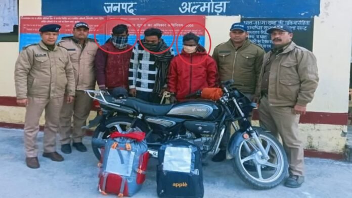 अपर पुलिस अधीक्षक हरवंस सिंह ने बताया कि बाइक में तीन लोग बुढ़ानपुर अलीगंज थाना भगतपुर जिला मुरादाबाद निवासी शाने आलम उर्फ सानू (30 वर्ष) पुत्र फारुख अंसारी, सतेन्द्र सिंह (28 वर्ष) पुत्र उदल सिंह व अल्लाउद्दीन (24 वर्ष) पुत्र अली मोहम्मद सवार थे. इनके कब्जे से दो बैगों में कुल 12.415 किलोग्राम गांजा बरामद होने पर गिरफ्तार किया गया है. अभियुक्त गांजे को मुरादाबाद की ओर ले जा रहे थे. जिसे बेचकर मुनाफा कमाने की फिराक में थे। बरामद गांजा की कीमत 3 लाख 10 हजार 375 रुपए है. पुलिस आरोपियों का आपराधिक इतिहास भी खंगाल रही है। वहीं पुलिस टीम में थानाध्यक्ष सल्ट प्रमोद पाठक, एएसआई दीवान सिंह, हेड कांस्टेबल संजू कुमार, विनोद कुमार, अवधेश कुमार, तथा कांस्टेबल परवेज अली शामिल रहे।