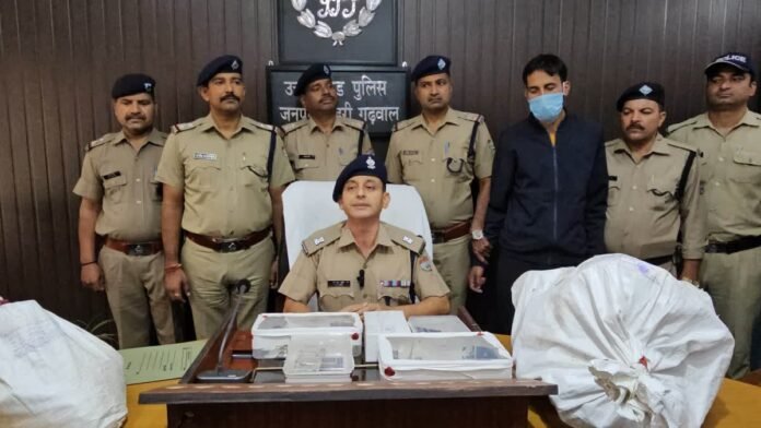 टिहरी। बीती 15 सितंबर को घनसाली थाना क्षेत्र के क्वीडांग गांव के भुवनेश्वरी मंदिर में आभूषणों और नकदी की चोरी के मामले में पुलिस ने टारजन गैंग के शातिर चोर को तमंचे, कारतूस और चोरी के सामान के साथ गिरफ्तार किया है। चोरी का खुलासा करने वाली टीम को एसएसपी आयुष अग्रवाल ने 5 हजार का इनाम देने की घोषणा की है। एएसपी जेआर जोशी ने बताया क्वीडांग के मंदिर में चोरी के मामले में ग्राम प्रधान दीवान सिंह की तहरीर पर थाना घनसाली में मुकदमा दर्ज किया था। जिसके बाद थाना घनसाली, लंबगांव और सीआईयू शाखा की घनसाली एसएचओ संजीव थपलियाल के नेतृत्व में संयुक्त टीम गठित की गई। टीम के अथक प्रयास से 18 सितम्बर को चोरी की घटना में संलिप्त टारजन गैंग के मुखिया आरोपी विशाल (31) पुत्र प्रेम सिंह निवासी ग्राम होल्टा पट्टी नैलचामी थाना घनसाली को 315 बोर के अवैध तमंचे, 2 कारतूस के साथ गिरफ्तार किया है।
