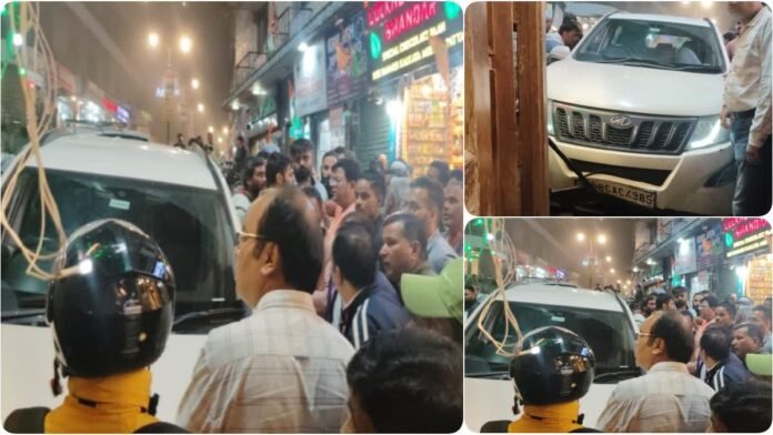 तेज रफ्तार से बैरियर से टकराई पर्यटकों में मची अफरा तफरी मसूरी में अचानक कार के ब्रेक हुए फेल
