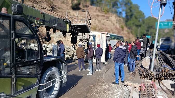 यमुनोत्री हाईवे पर शुक्रवार सुबह सड़क हादसा हो गया। दोबाटा के पास एक डंपर अनियंत्रित होकर सड़क पर पलट गया। घटना में चालक बाल-बाल बचा। डंपर के पलटते ही चालक ने कूदकर जान बचाई। शुक्रवार सुबह पोल गांव से बड़कोट की तरफ जा रहा डंपर दोबाटा के पास सड़क पर पलट गया। डंपर पलटने से से यमुनोत्री राजमार्ग पर करीब आधे घंटे तक वाहनों की आवाजाही बंद रही। कुछ देर बाद क्रेन की मदद से डंपर को सड़क से हटाया गया, जिसके बाद राजमार्ग पर वाहनों की आवाजाही शुरू हुई।