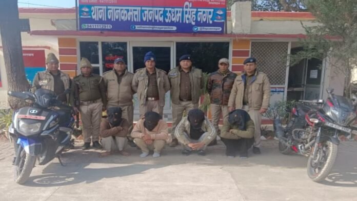 रुद्रपुर। नानकमत्ता पुलिस ने नेपाल मूल के चार युवकों को 20 ग्राम स्मैक के साथ गिरफ्तार किया है। आरोपियों से नेपाली करेंसी, बाइक और स्कूटी बरामद हुई है। आरोपी नानकमत्ता से स्मैक खरीदकर नेपाल में सप्लाई करते थे और खुद भी सेवन करते थे। बहरहाल आरोपियों के खिलाफ मुकदमा दर्ज कर उन्हें कोर्ट में पेश किया गया है।
