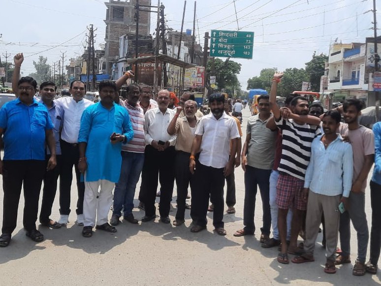 व्यापारियों ने सत्येंद्र चौक पर किया प्रदर्शन