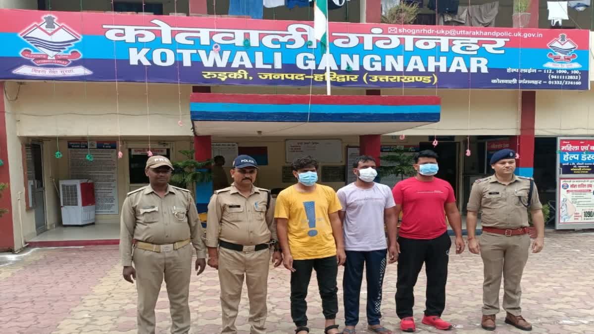 रुड़की। हरिद्वार जिले के रुड़की की गंगनहर कोतवाली पुलिस ने युवती का अपहरण करने वाले तीन आरोपोयों को गिरफ्तार कर लिया है। पुलिस ने आरोपियों के कब्जे से अपहरण की गई युवती को भी सकुशल बरामद कर लिया है। इससे पहले आरोपियों ने युवती को छोड़ने के नाम पर उसके परिजनों से एक लाख रुपए की डिमांड की थी। अब आरोपियों को पुलिस कोर्ट के समक्ष पेश कर दिया है। जिसके बाद आगे की कार्रवाई जा रही है।