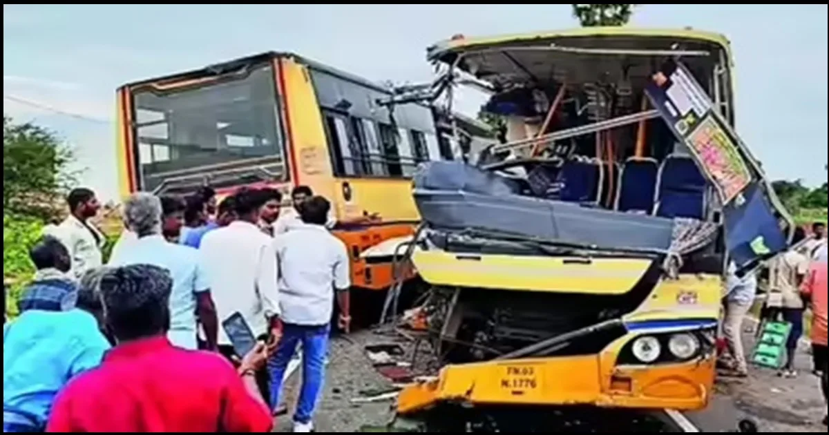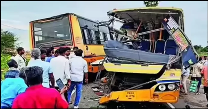 दो बसों के बीच टक्कर तीन की मौत 15 से अधिक घायल तमिलनाडु के मदुरै में भीषण सड़क हादसा