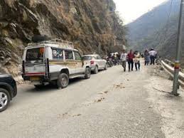 रास्ता बंद होने से फंसे वाहन भारी बारिश से ऋषिकेश-गंगोत्री हाईवे पर आया मलबा