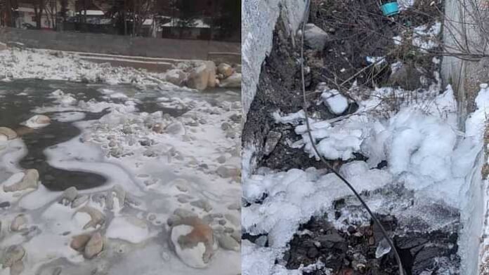 उत्तरकाशी जनपद में सूखी ठंड के बीच ऊंचाई वाले क्षेत्रों में तापमान माइनस 10 डिग्री तक जाने के कारण गंगोत्री धाम में नदी जमने लगी है। वहीं, धाम और हर्षिल घाटी में पानी की आपूर्ति बंद हो गई है। साथ ही वहां लोहे के पाइप फटने के कारण स्थानीय लोगों को परेशानी का सामना करना पड़ रहा है।गंगोत्री धाम में इन दिनों बिना बारिश और बर्फबारी के भी न्यूनतम तापमान माइनस 1 से 10 डिग्री तक जा रहा है, तो वहीं हर्षिल घाटी में दिन में अधिकतम तापमान चार से पांच डिग्री तक रह रहा है। शाम चार बजे के बाद यह माइनस 1 से देर रात तक माइनस 8 डिग्री न्यूनतम जा रहा है।धराली निवासी मंजुल पंवार ने बताया कि तापमान में भारी गिरावट आने के कारण पानी की आपूर्ति बंद हो गई है।